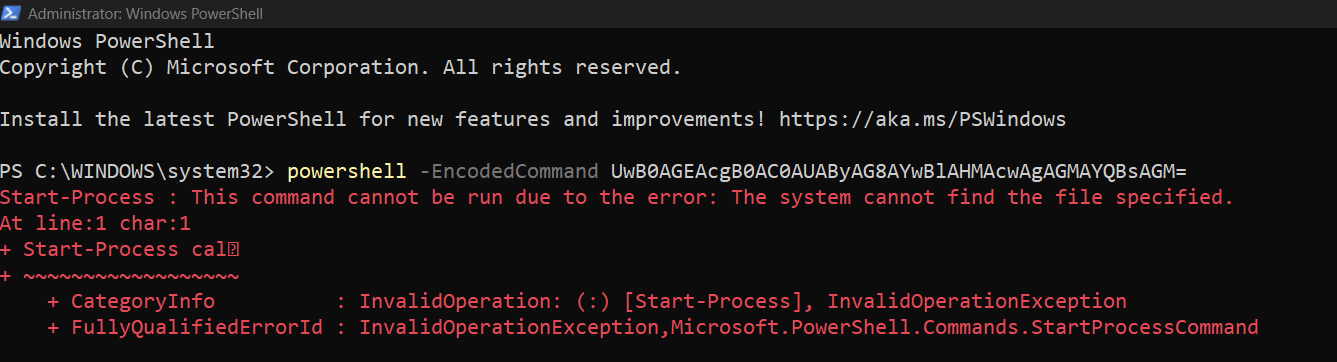 Encoded PowerShell command used to simulate obfuscated script execution commonly observed in malware.