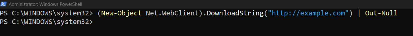 PowerShell WebClient command used to simulate outbound HTTP activity from the monitored endpoint.